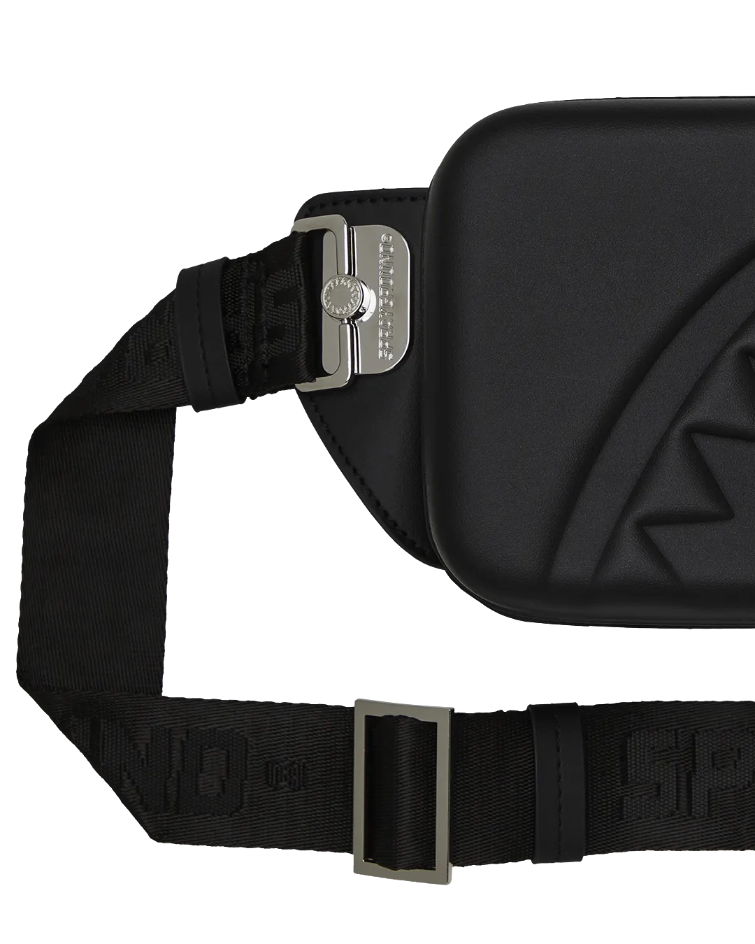 ?Sprayground printed logo zipper tape and adjustable strap.Exterior