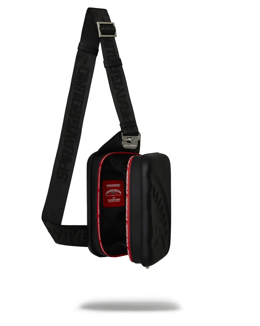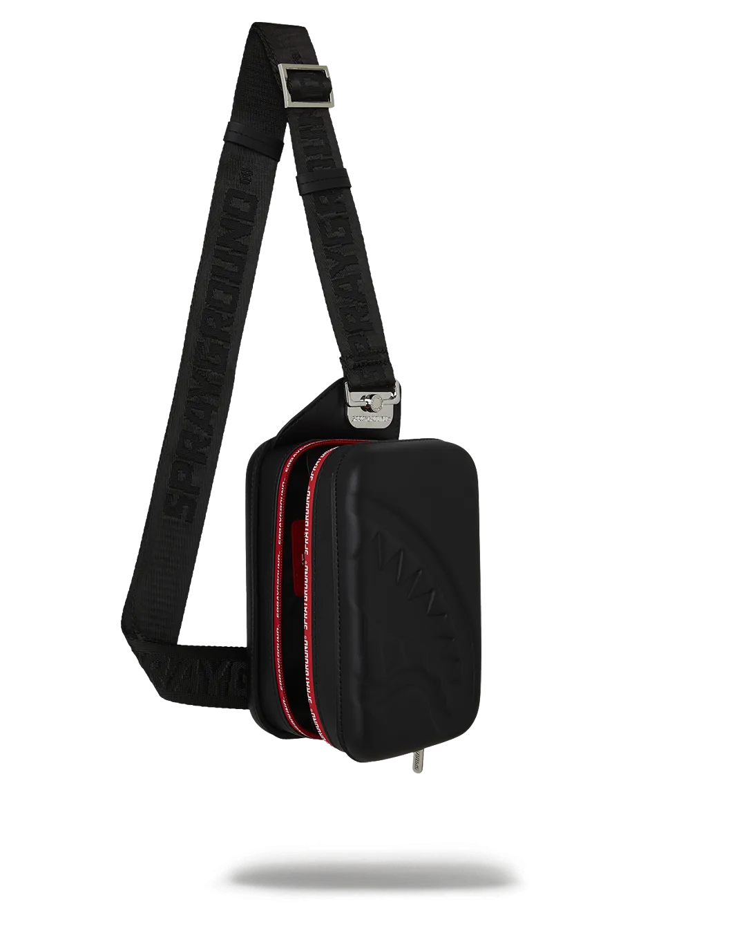 NEW SHAPE: EVA molded hard-shell sling with embossed sharkmouth on the front.