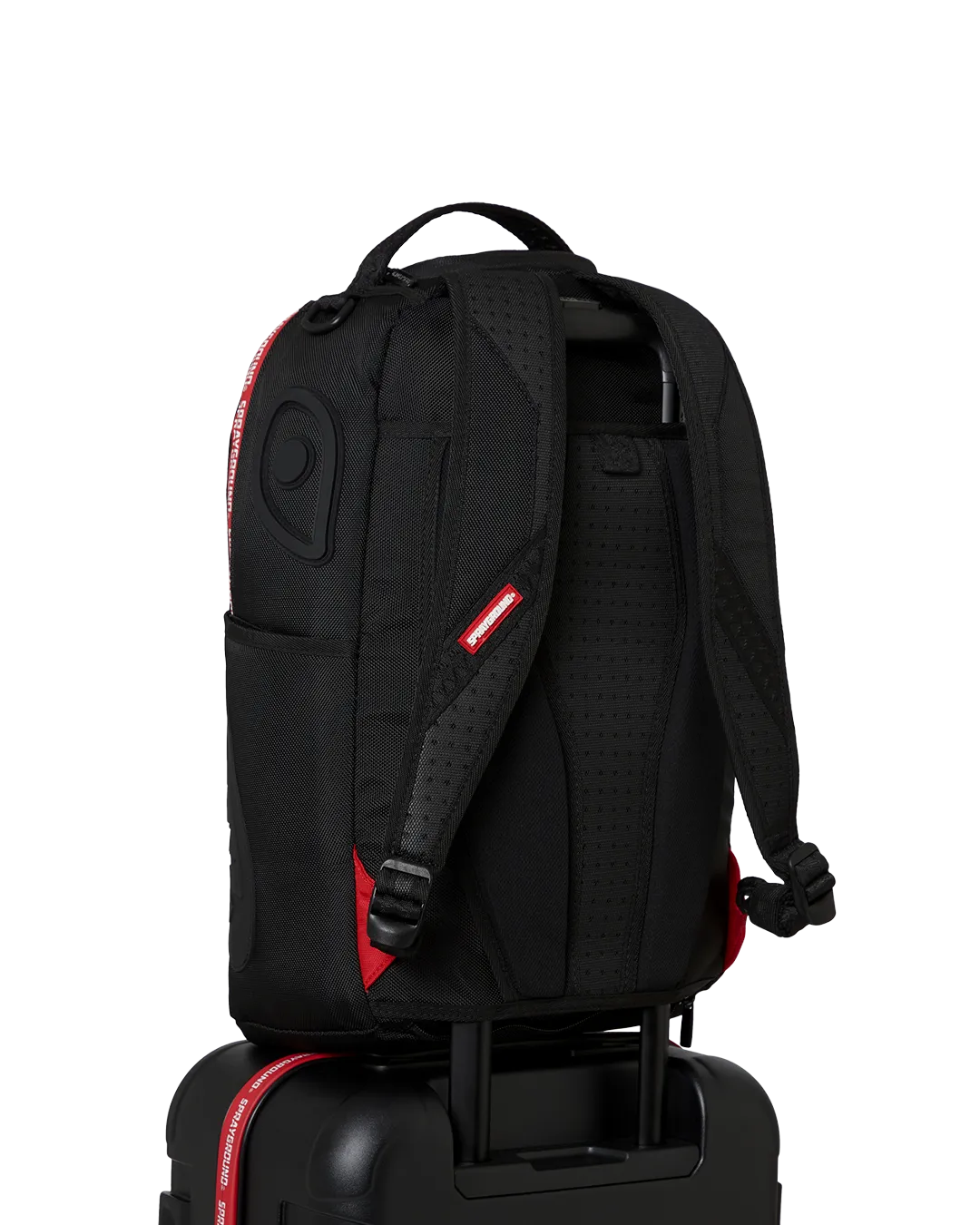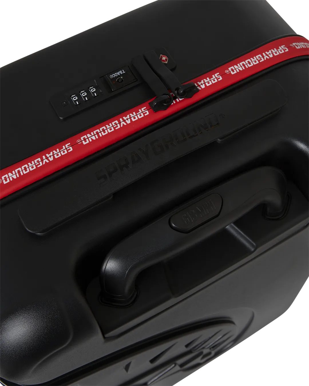 Features Sprayground logo printed zipper tape and an embossed sharkmouth