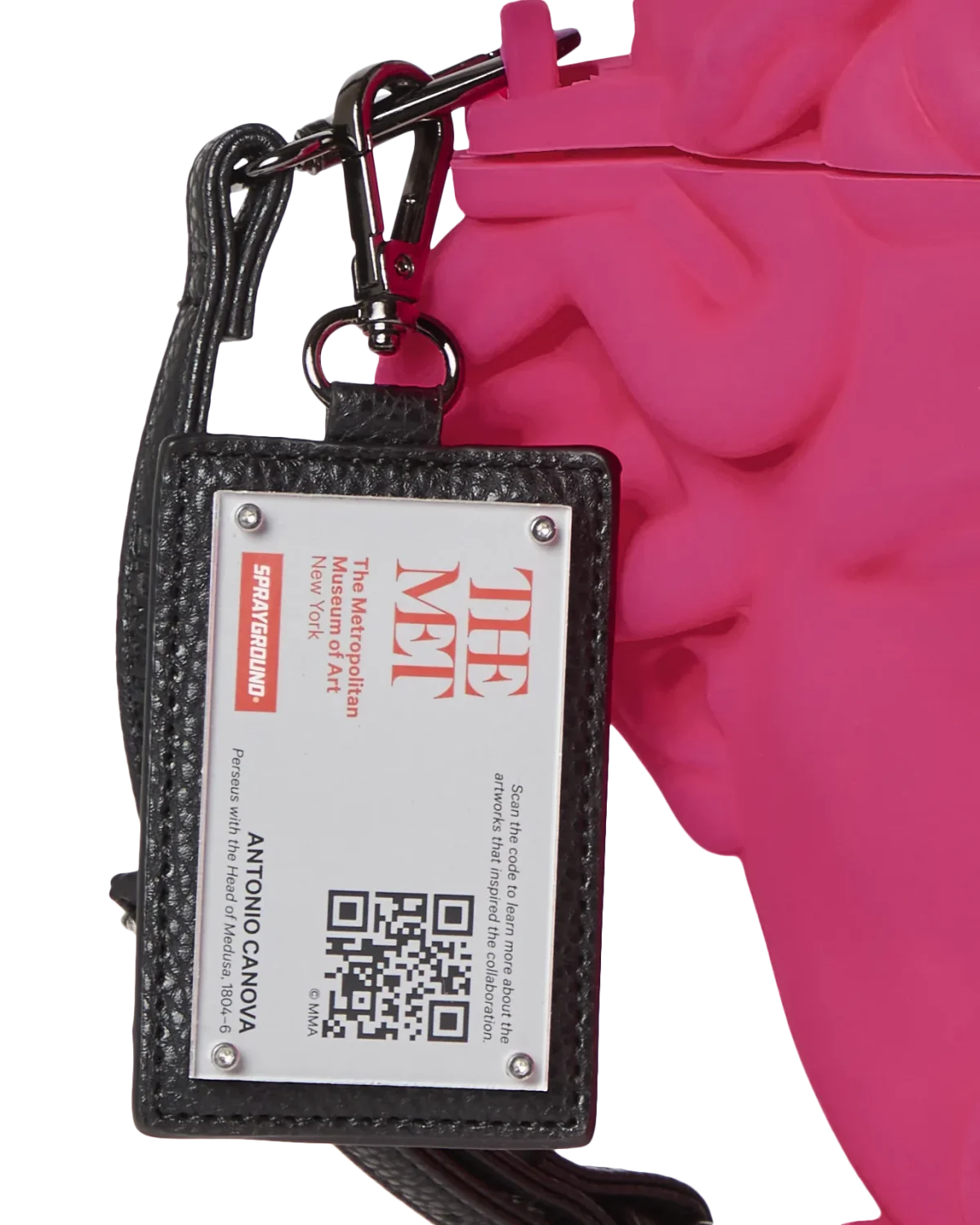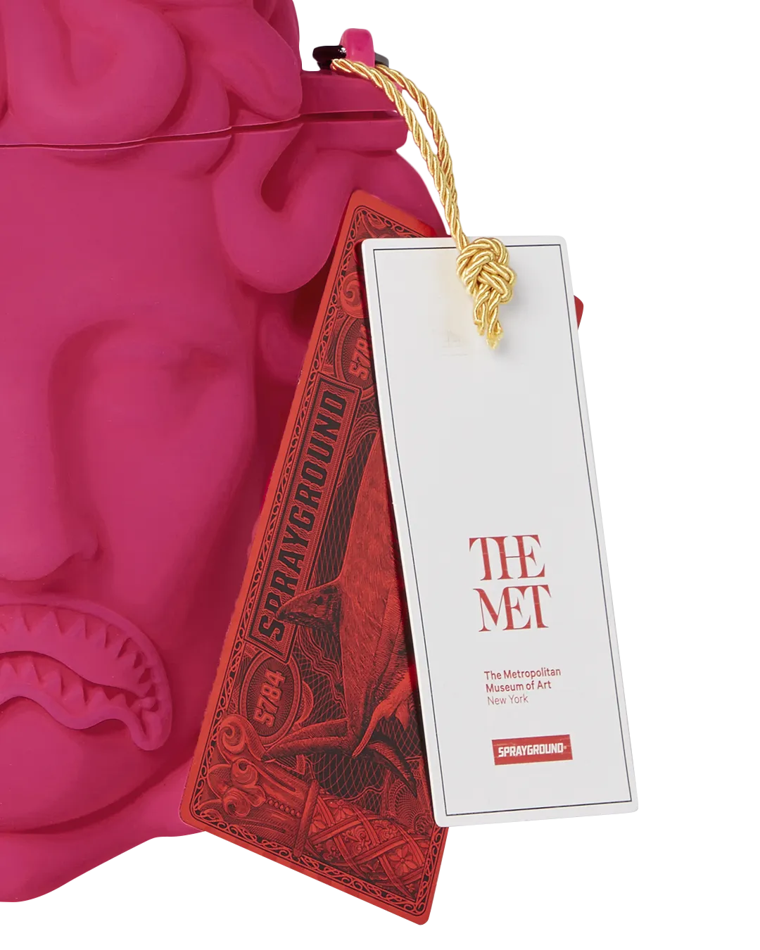 This head-turning handbag references Antonio Canova??s (Italian, 1757?C1822) Perseus with the Head of Medusa (1804?C6), a monumental sculpture in The Met collection. It celebrates the Greek hero Perseus??s victory over Medusa, the monstrous mythological Gorgon feared for her hair made of snakes and her deathly gaze that turned anyone she looked at to stone. Canova masterfully commemorates Perseus??s triumph over Medusa, whose likeness has long served as an image of evil to repel evil. The artist was universally acknowledged as the preeminent sculptor of his era, and his imposing masterwork in the Museum??s holdings closely reflects his admiration for the art of antiquity. This unique bag celebrates Canova??s creation with the addition of Sprayground??s signature shark mouth.?