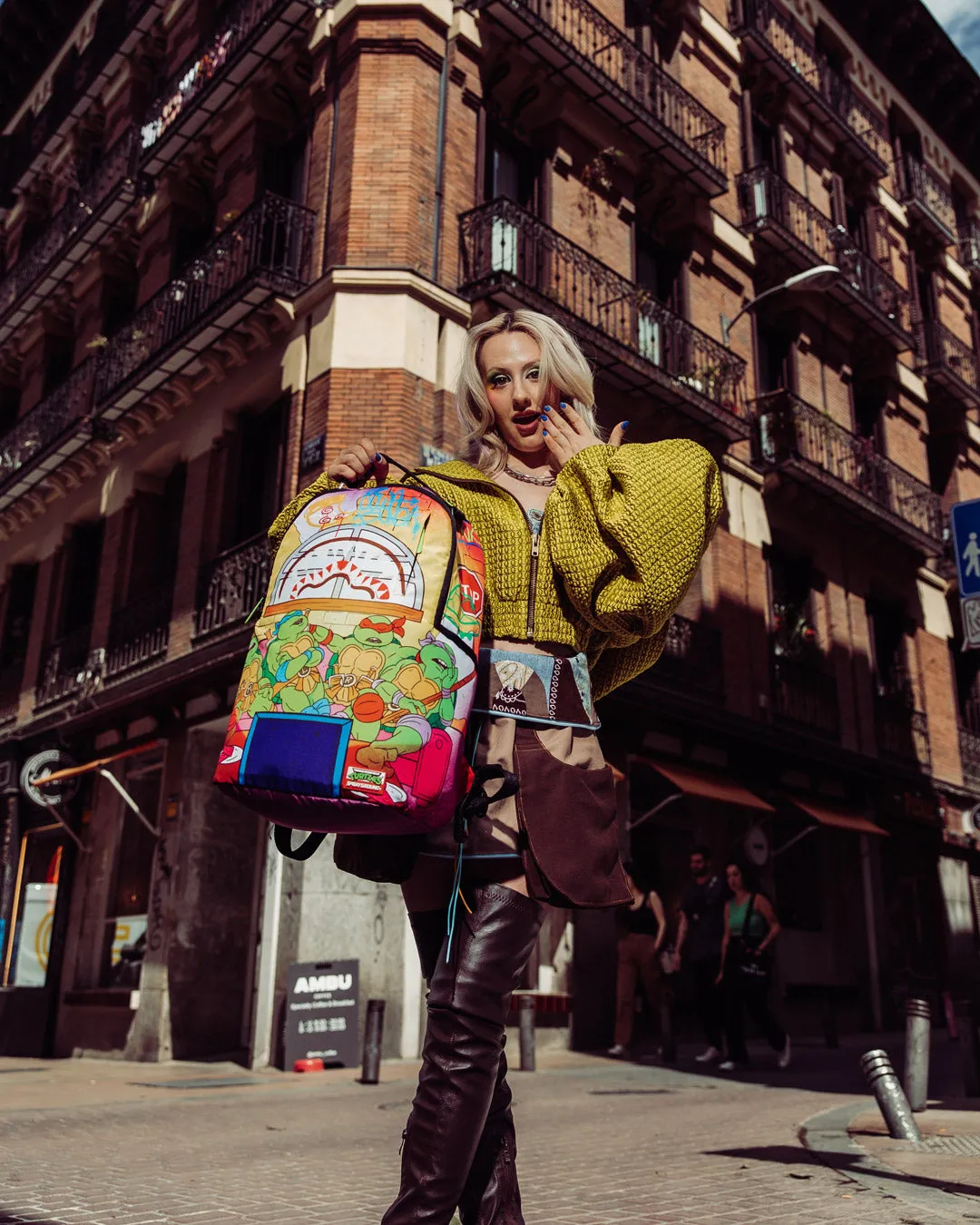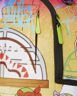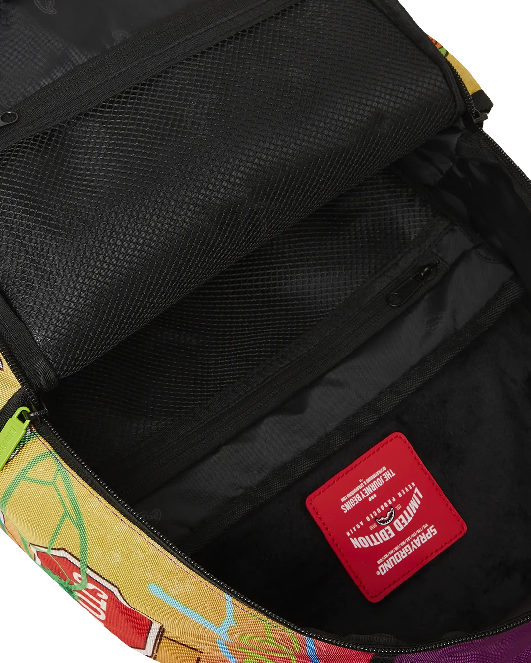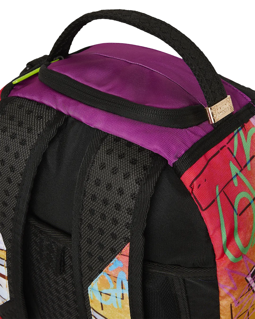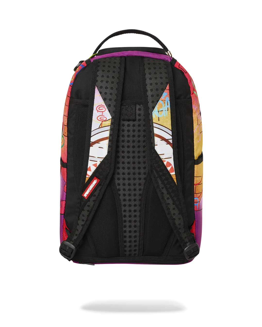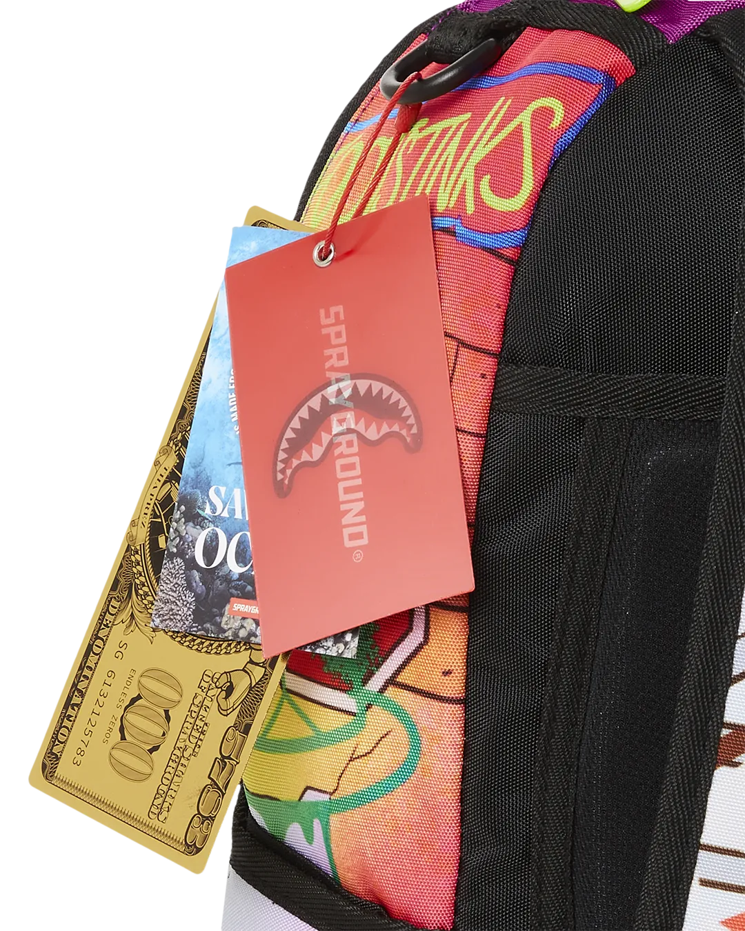 Dimensions: 18″ x 6″ x 11.5″ ? Front zipper pocket ? Side pockets ? Zippered Stash pocket ? Separate velour sunglass compartment ? Ergonomic mesh back padding ? Adjustable Straps for custom sizing ? Gold zippers with metal hardware ? Metal “Sprayground Authentic” badge ? Slide through back sleeve connects to carry-on luggage to free your hands