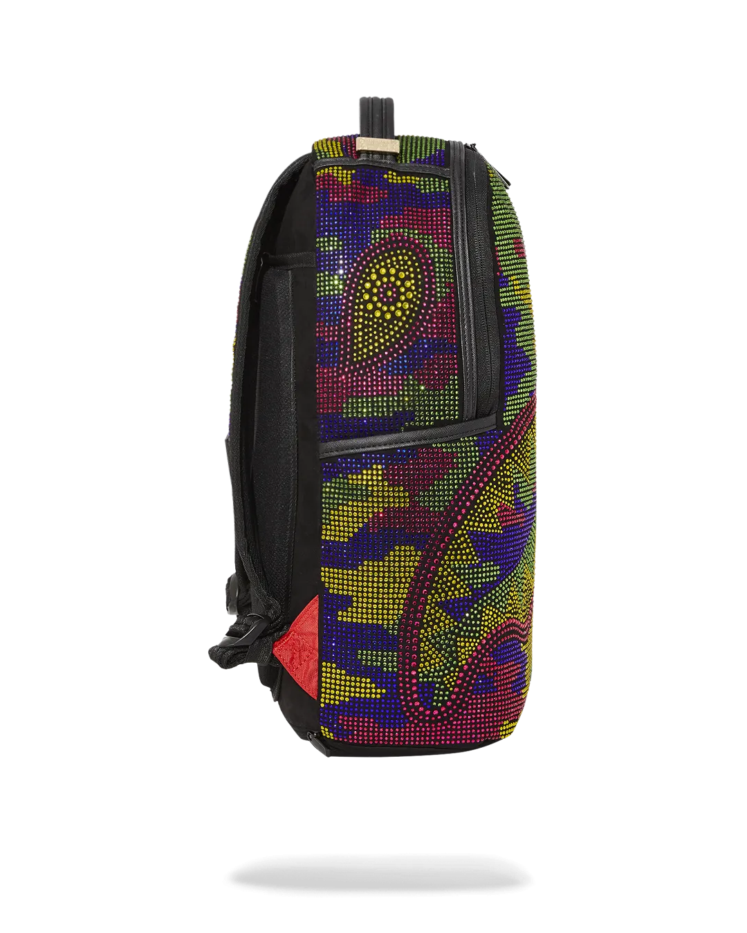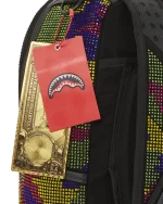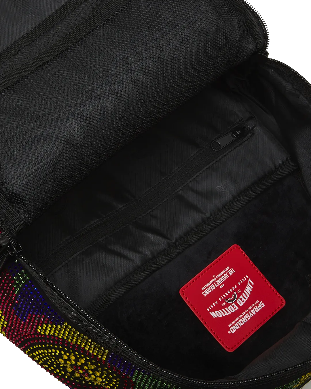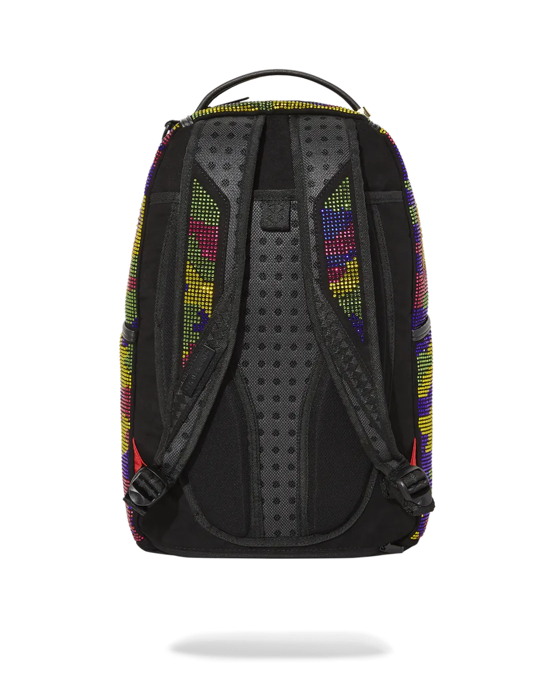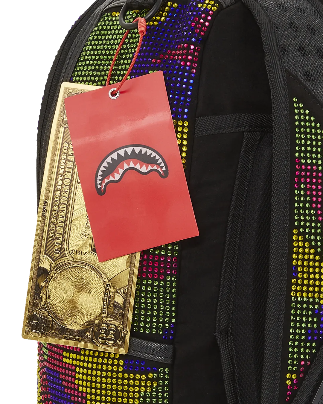 Dimensions: 18″ x 6″ x 11.5″ ? Front zipper pocket ? Side pockets ? Zippered Stash pocket ? Separate velour sunglass compartment ? Ergonomic mesh back padding ? Adjustable Straps for custom sizing ? Gold zippers with metal hardware ? Metal “Sprayground Authentic” badge ? Slide through back sleeve connects to carry-on luggage to free your hands