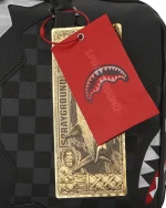 Dimensions: 8″ x 7.5″ x 13″? Metal zipper pocket??Back Zippers ?Zippered sneaker pocket ? gold zippers ? Adjustable Straps for custom sizing ?Metal Zippers with Metal Hardware ? bag of Sprayground money