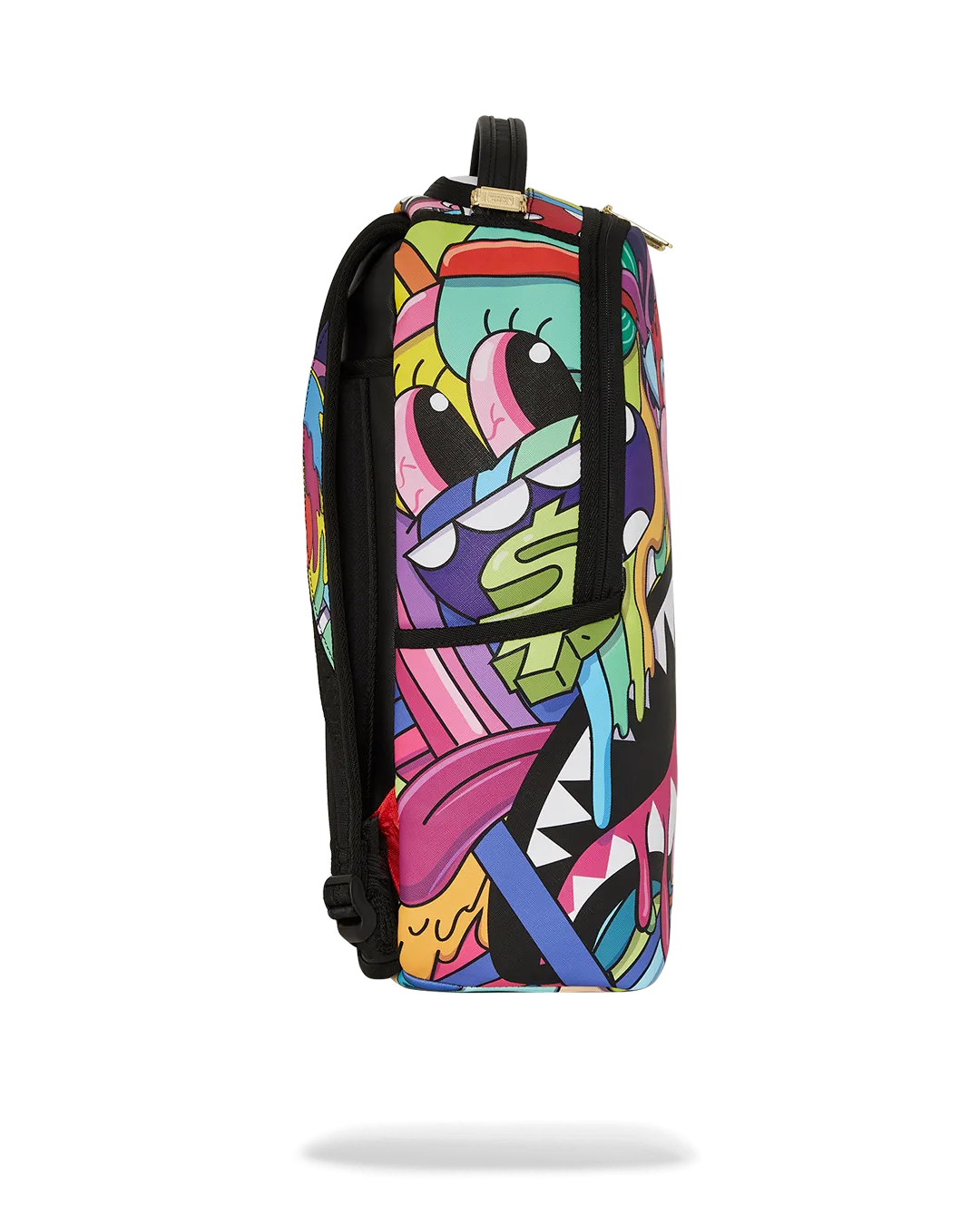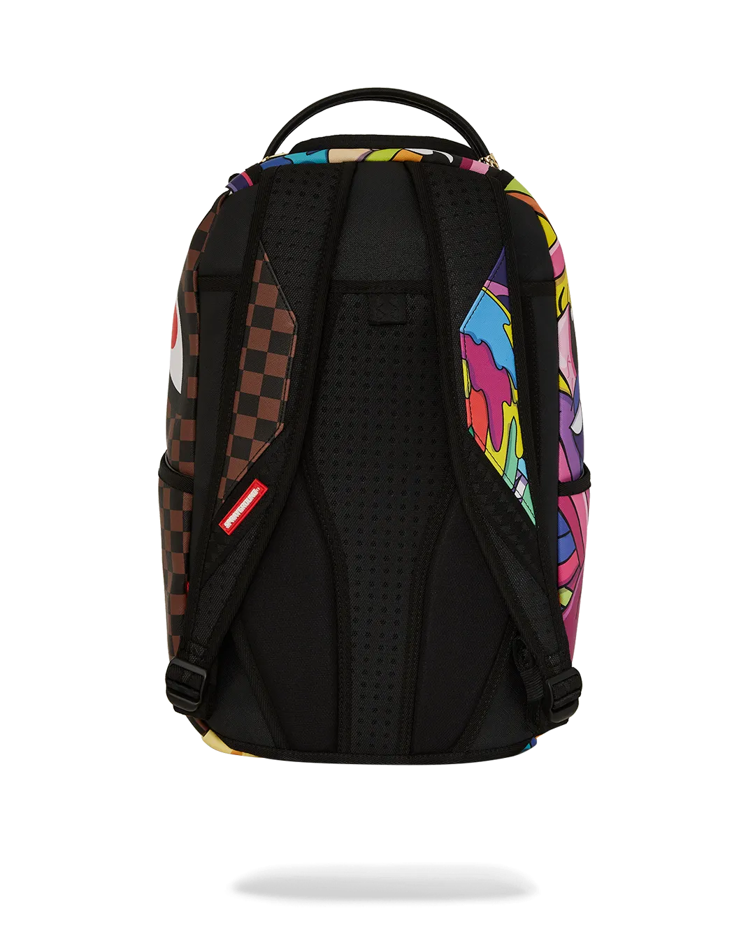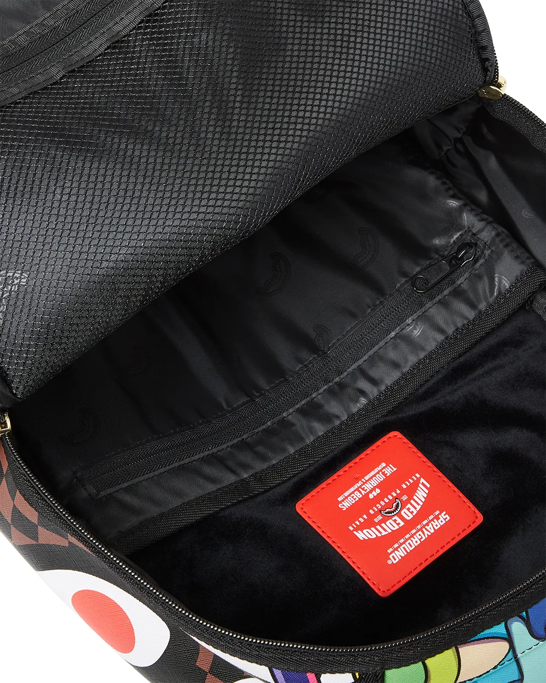 Dimensions: 18″ x 6″ x 11.5″ ? Front zipper pocket ? Side pockets ? Zippered Stash pocket ? Separate velour sunglass compartment ? Ergonomic mesh back padding ? Adjustable Straps for custom sizing ? Gold zippers with metal hardware ? Metal “Sprayground Authentic” badge ? Slide through back sleeve connects to carry-on luggage to free your hands