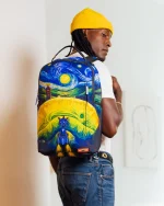 Dimensions: 18″ x 6″ x 11.5″ ? Front zipper pocket ? Side pockets ? Zippered Stash pocket ? Ergonomic mesh back padding ? Adjustable Straps for custom sizing ? Nylon Zippers with Metal Hardware ? Metal “Sprayground Authentic” badge ? Slide through back sleeve connects to Carry on luggage to free your hands