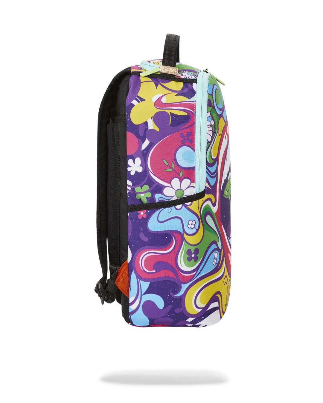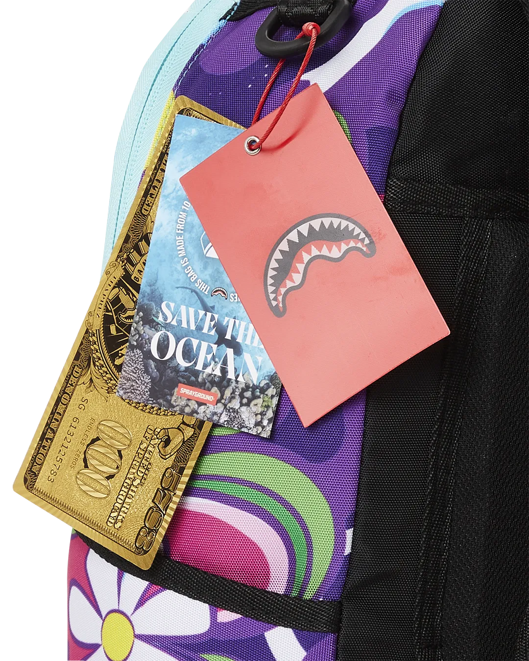 Dimensions: 18″ x 6″ x 11.5″ ? Front zipper pocket ? Side pockets ? Zippered Stash pocket ? Separate velour sunglass compartment ? Ergonomic mesh back padding ? Adjustable Straps for custom sizing ? Gold zippers with metal hardware ? Metal “Sprayground Authentic” badge ? Slide through back sleeve connects to carry-on luggage to free your hands