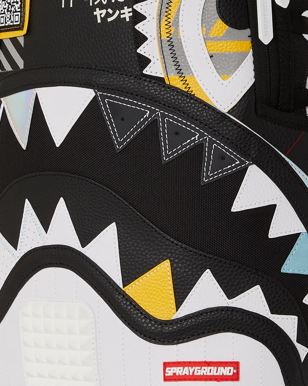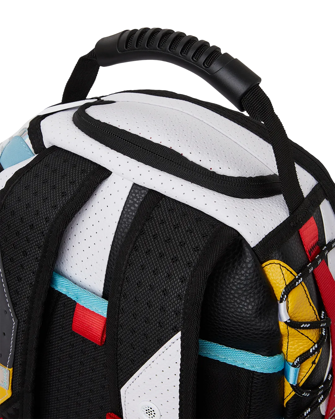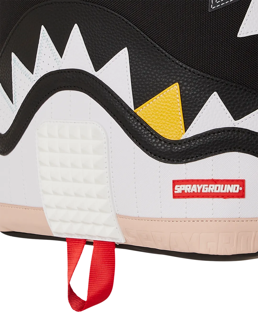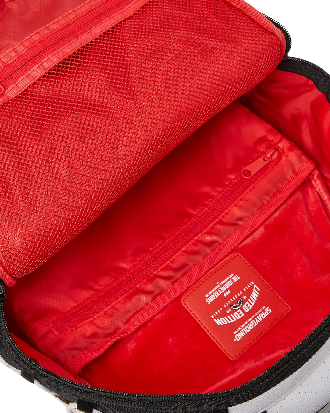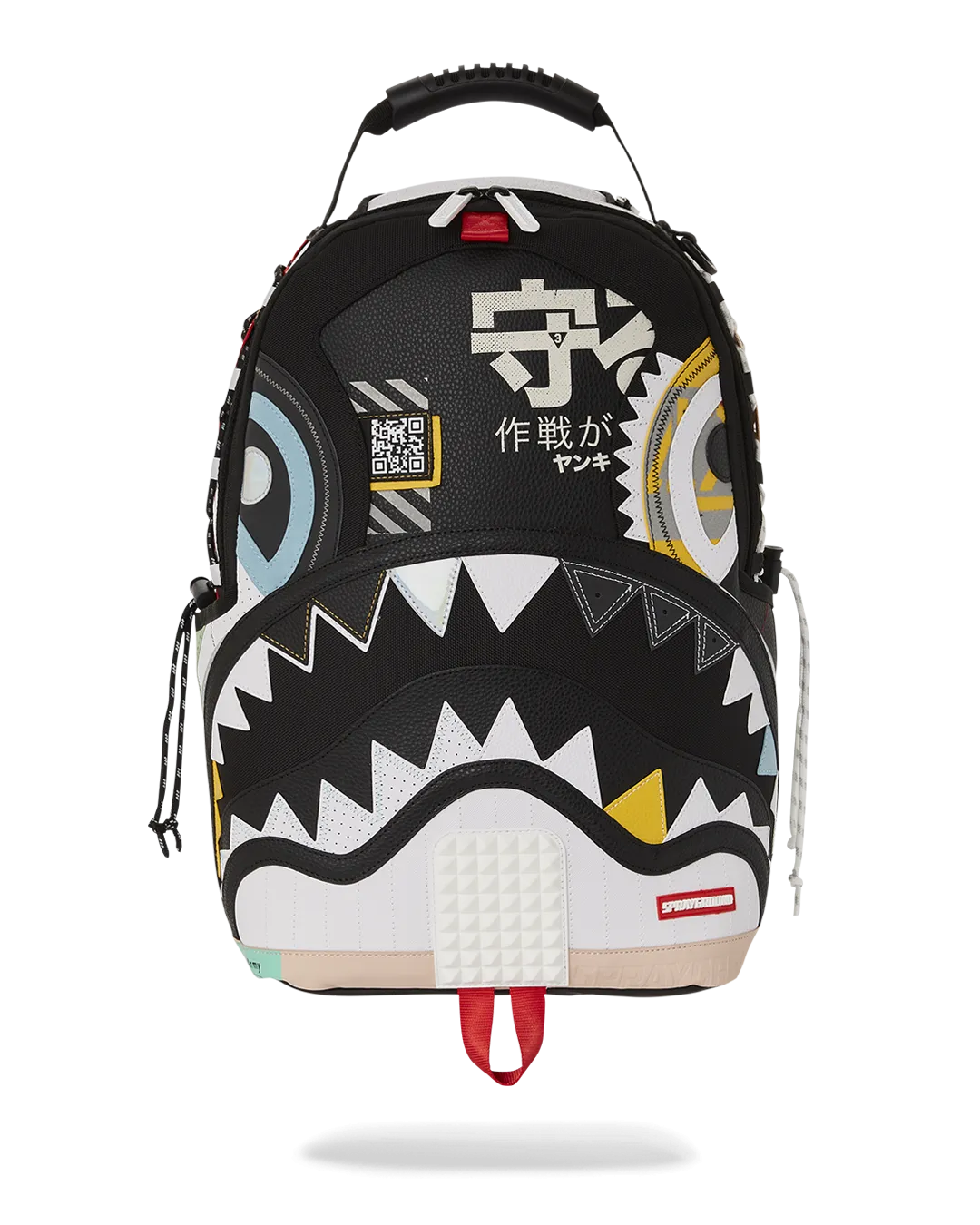 Dimensions: 18″ x 6″ x 11.5″ ? Front zipper pocket ? Side pockets ? Zippered Stash pocket ? Separate velour sunglass compartment ? Ergonomic mesh back padding ? Adjustable Straps for custom sizing ? Gold zippers with metal hardware ? Metal “Sprayground Authentic” badge ? Slide through back sleeve connects to carry-on luggage to free your hands