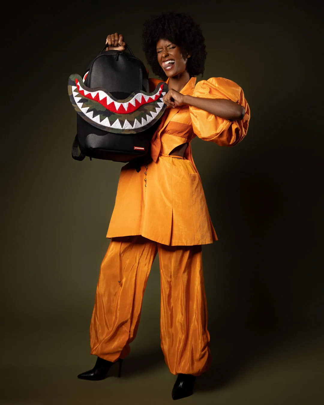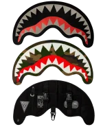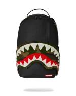 Classic 100% PVC backpack with 3 interchangeable velcro mouths.? Including a Camo Design, a Special Ops Design and a 3M glow shark mouth that illuminates in the dark when light flashes on it.