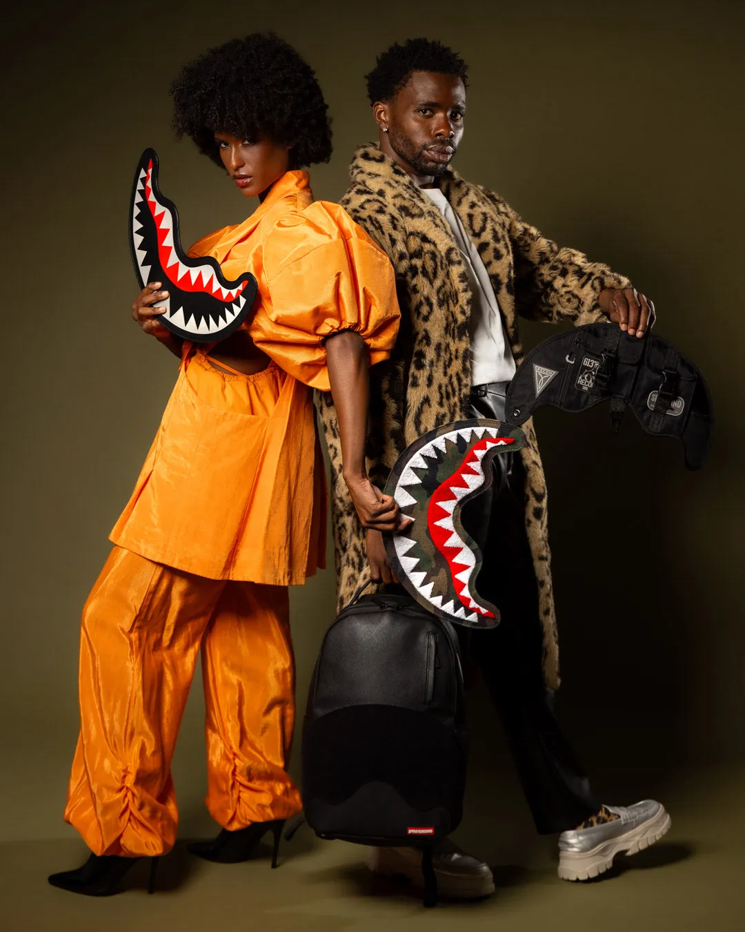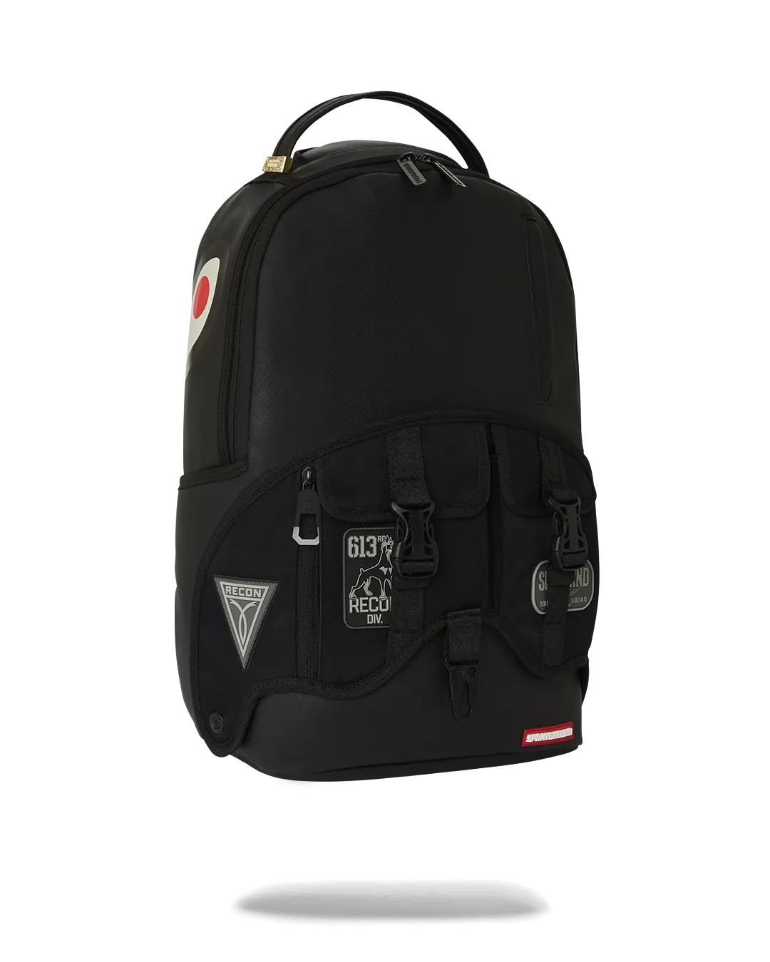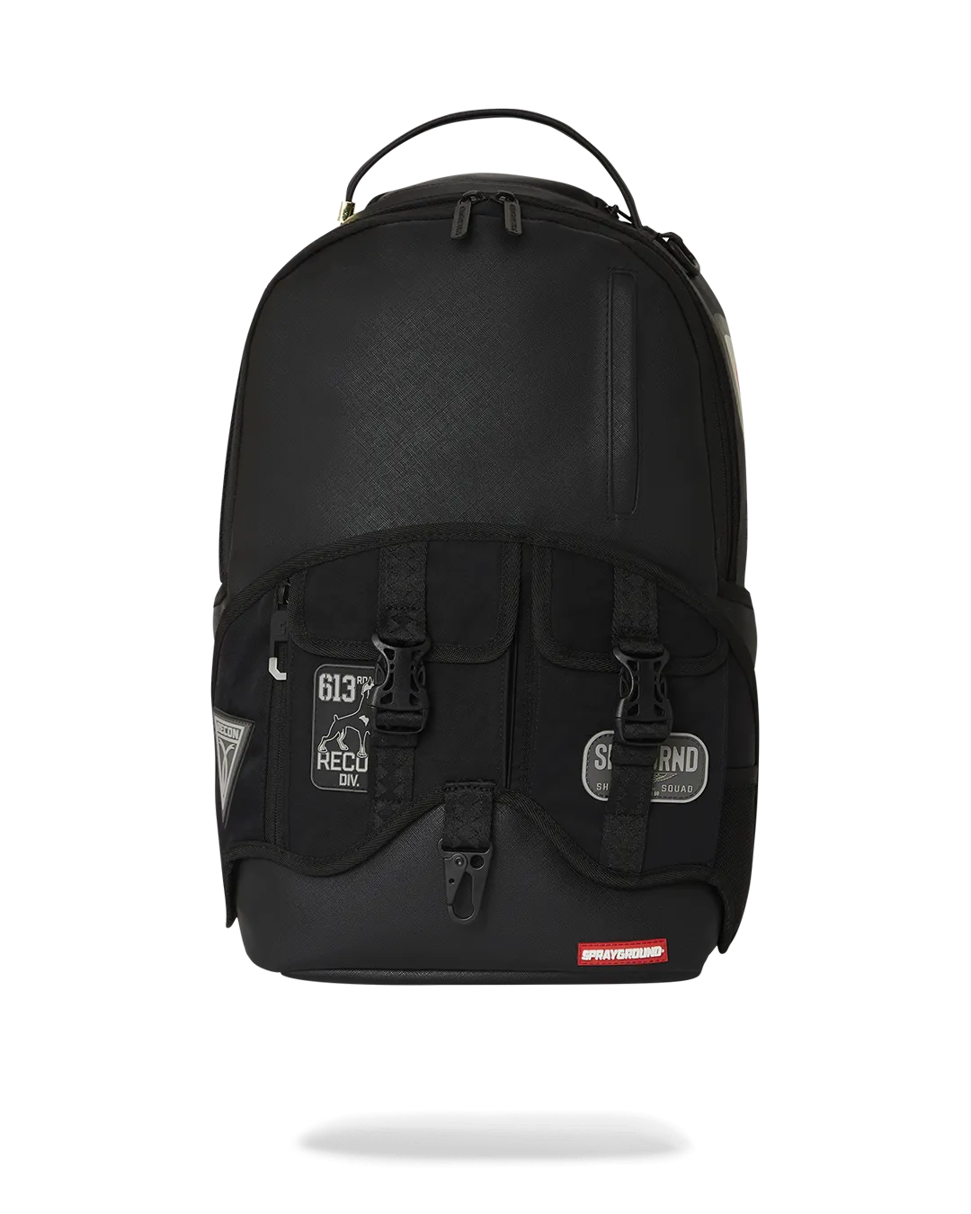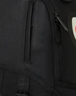 Dimensions: 18″ x 6″ x 11.5″ ? Front zipper pocket ? Side pockets ? Zippered Stash pocket ? Separate velour sunglass compartment ? Ergonomic mesh back padding ? Adjustable Straps for custom sizing ? Gold zippers with metal hardware ? Metal “Sprayground Authentic” badge ? Slide through back sleeve connects to carry-on luggage to free your hands