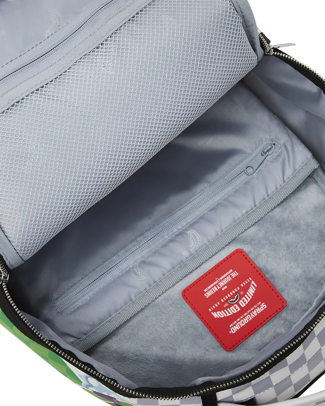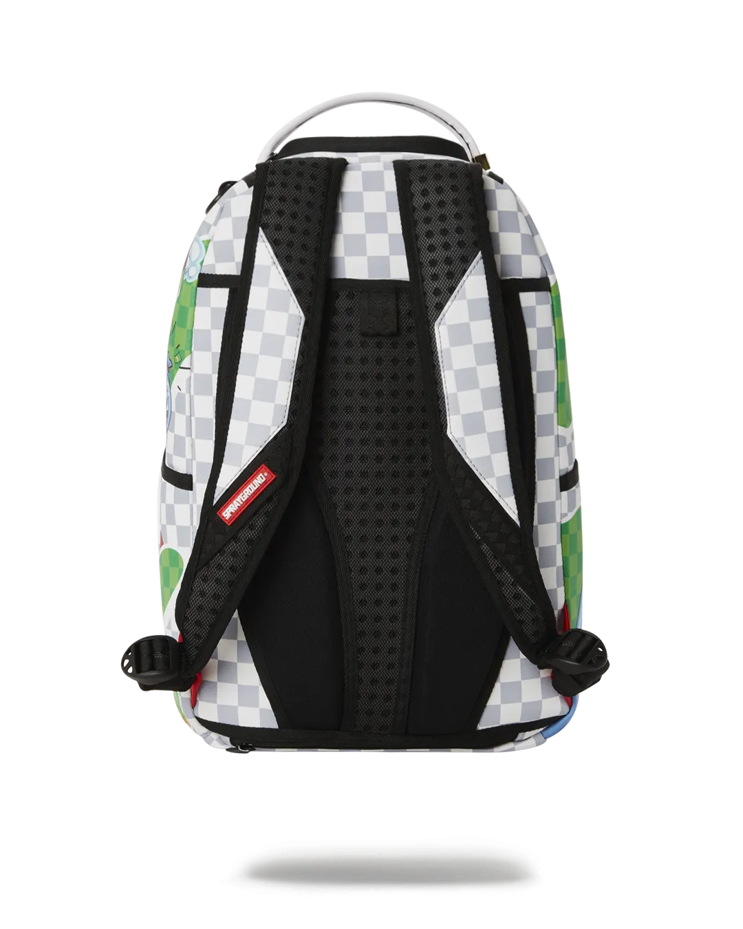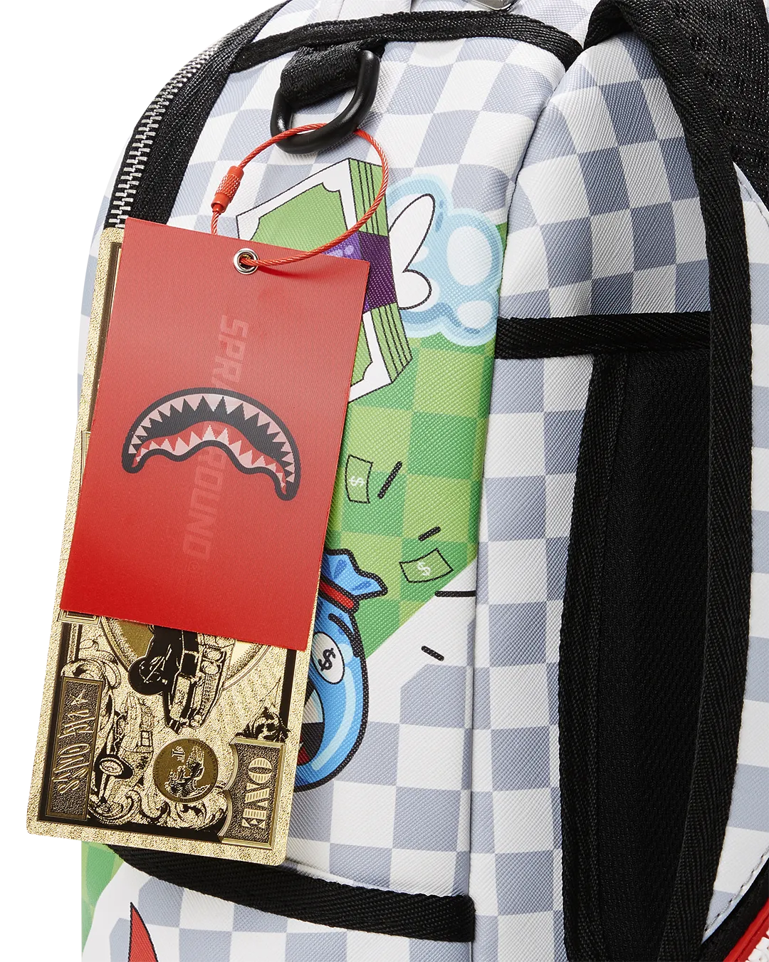 Dimensions: 18″ x 6″ x 11.5″ ? Front zipper pocket ? Side pockets ? Zippered Stash pocket ? Separate velour sunglass compartment ? Ergonomic mesh back padding ? Adjustable Straps for custom sizing ? Gold zippers with metal hardware ? Metal “Sprayground Authentic” badge ? Slide through back sleeve connects to carry-on luggage to free your hands