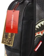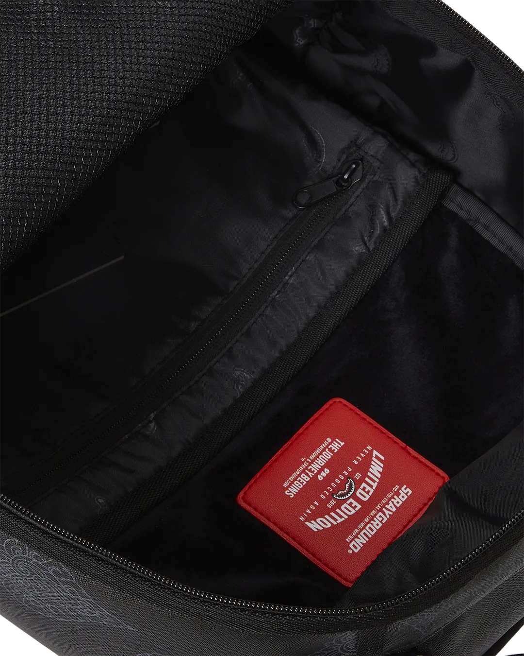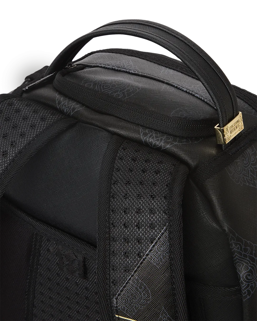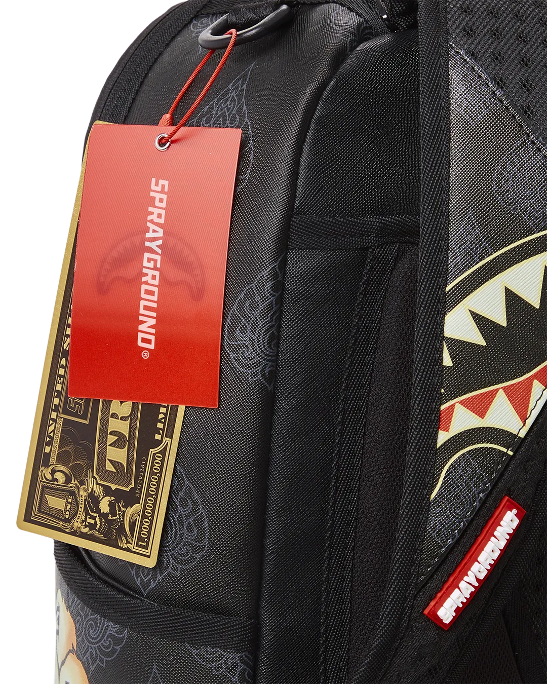 Dimensions: 18″ x 6″ x 11.5″ ? Front zipper pocket ? Side pockets ? Zippered Stash pocket ? Separate velour sunglass compartment ? Ergonomic mesh back padding ? Adjustable Straps for custom sizing ? Gold zippers with metal hardware ? Metal “Sprayground Authentic” badge ? Slide through back sleeve connects to carry-on luggage to free your hands